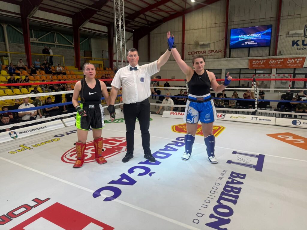 Na drugom dijelu Državnog prvenstva u kik boksu u disciplinama K1-FC-LC , održanom 10. i 11.05. u Gradačcu u tehničkoj organizaciji KBV “FLEK TOM-CAT” TUZLA , u konkurenciji preko 300 takmičara iz 60 klubova iz cijele zemlje, naš klub je uzeo učešće sa jednim dijelom perspktivne i mlade ekipe koja je ostvarila zavidan rezultat na ovom prvenstvu . Kik boks klub “Titanium” Usora se ponosno vraća kući s pet medalja: dvije zlatne 🥇, među kojima je i pehar 🏆 za najuspješniju seniorku, koji je u disciplini K1 osvojila Jasmina Merdić, jednom srebrnom 🥈i dvije bronzane medalje🥉. Ovi rezultati potvrđuju da ova podmlađena ekipa moze težiti ka većim uspjesima. Čestitamo našim takmičarima i trenerima, a već u srijedu ako Bog da ekipa u sastavu : Jasmina Merdic, Kanita Muminovic i trener Elvedin Dubravac putuju na Svjetski kup u Antaliju-Turska , na kojem je prijavljeno preko 3500 takmicara iz cijelog svijeta.Cestitke tehničkom organizatoru na besprijekornoj organizaciji prvenstva.
