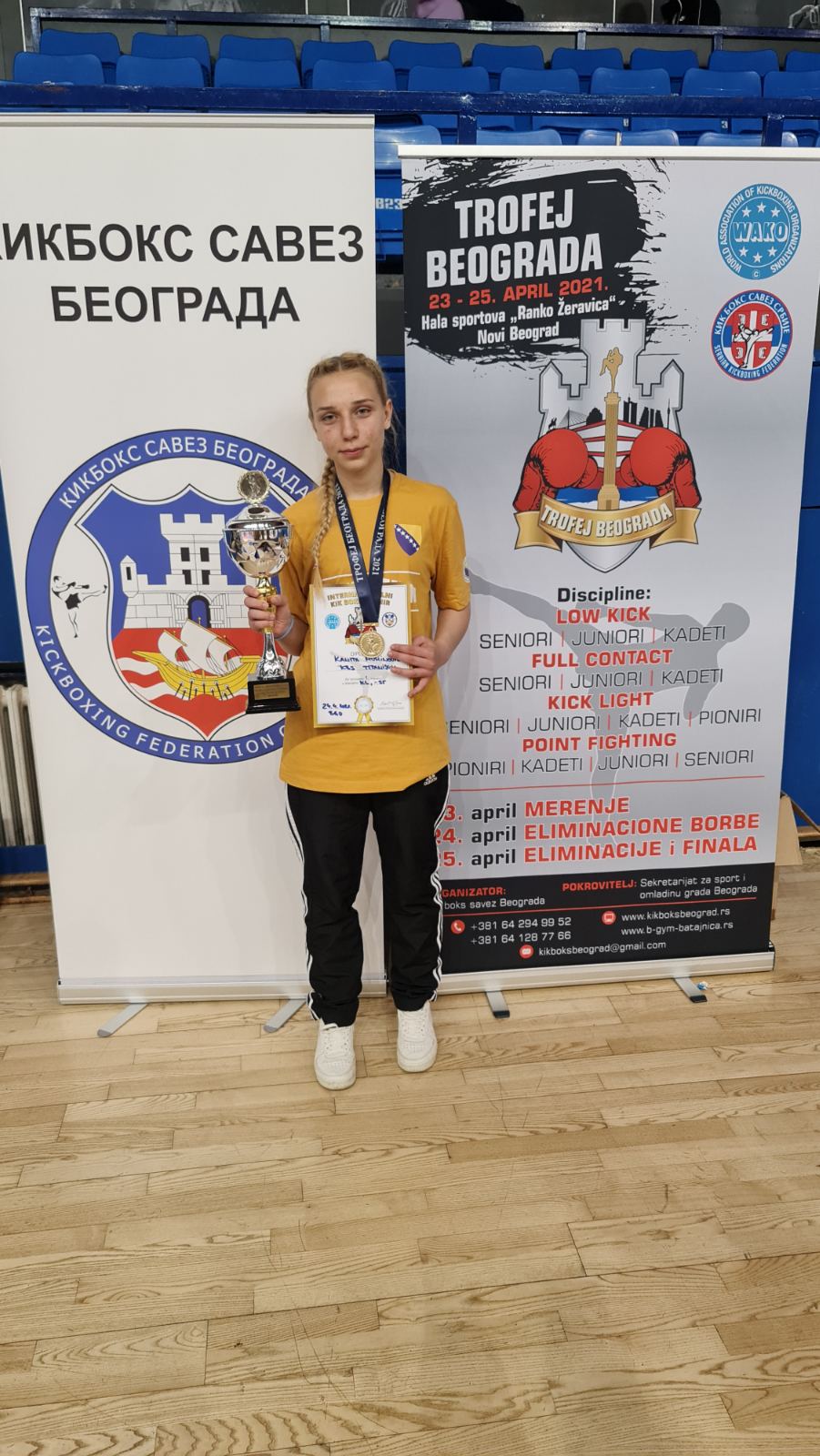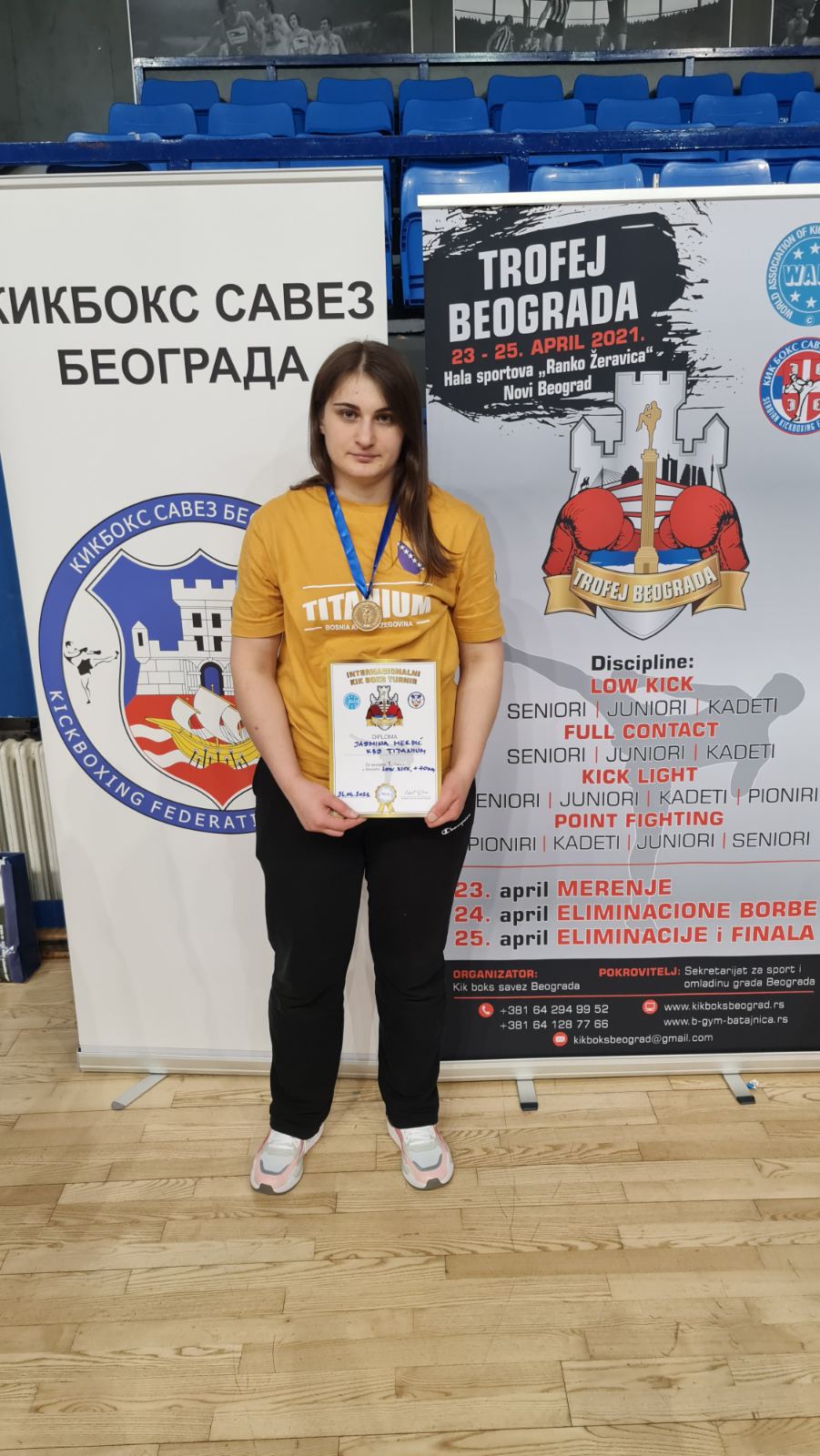 U izuzetno jakoj konkurenciji naši takmičari zabilježili su odličan rezultat osvojivši 3 zlatne medalje i pehar za najbolju takmičarku turnira i to kako slijedi: